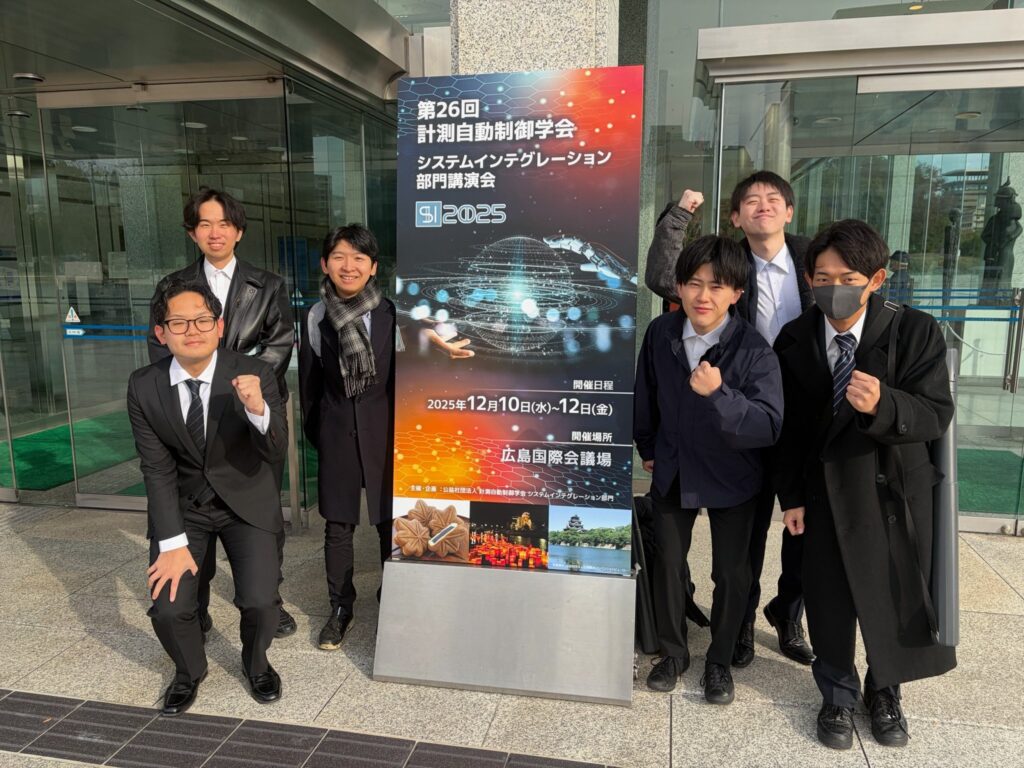 2025/12/10~12にかけて広島にて開催されたSICE SI2025に参加しました。発表メンバーはM2の高村、杉山、彦坂、坂部、M1の中村、B4の児玉、助教の戸塚先生です。戸塚先生は今回のSIではキーノート講演として発表をしました。